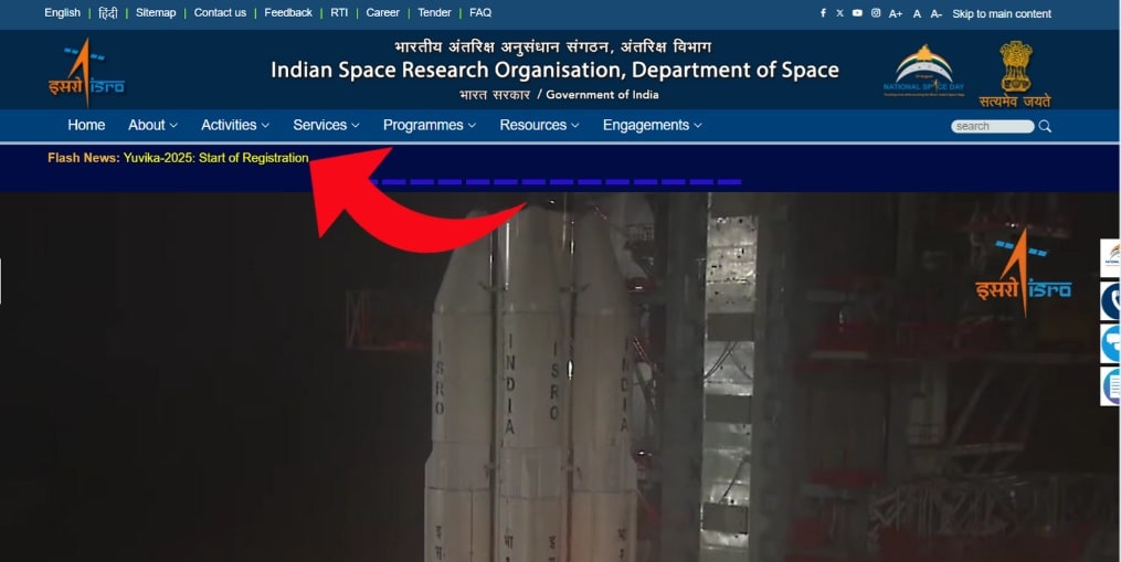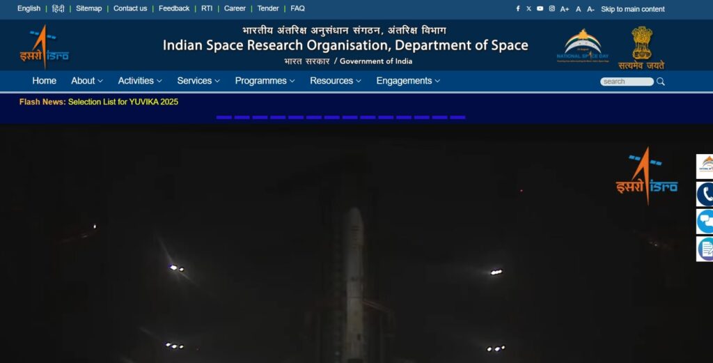 • The student must select the Yuvika 2025 option on the main page of ISRO’s official website.