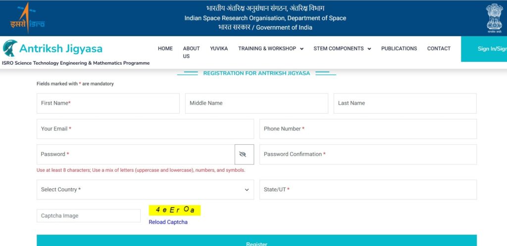 • After completing the ISRO Yuvika 2025 Registration Online process, the student needs to access the portal using their login credentials.